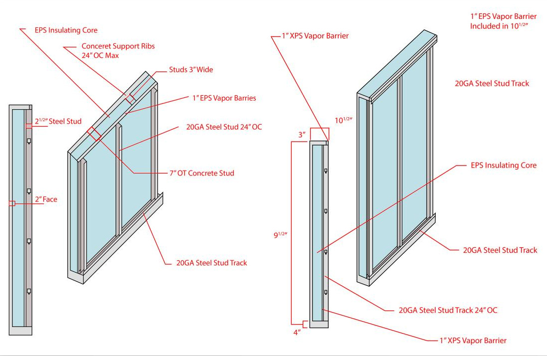 - Steel studs are on the interior face allowing for a easy electrical, plumbing and wallboard or other finish material.